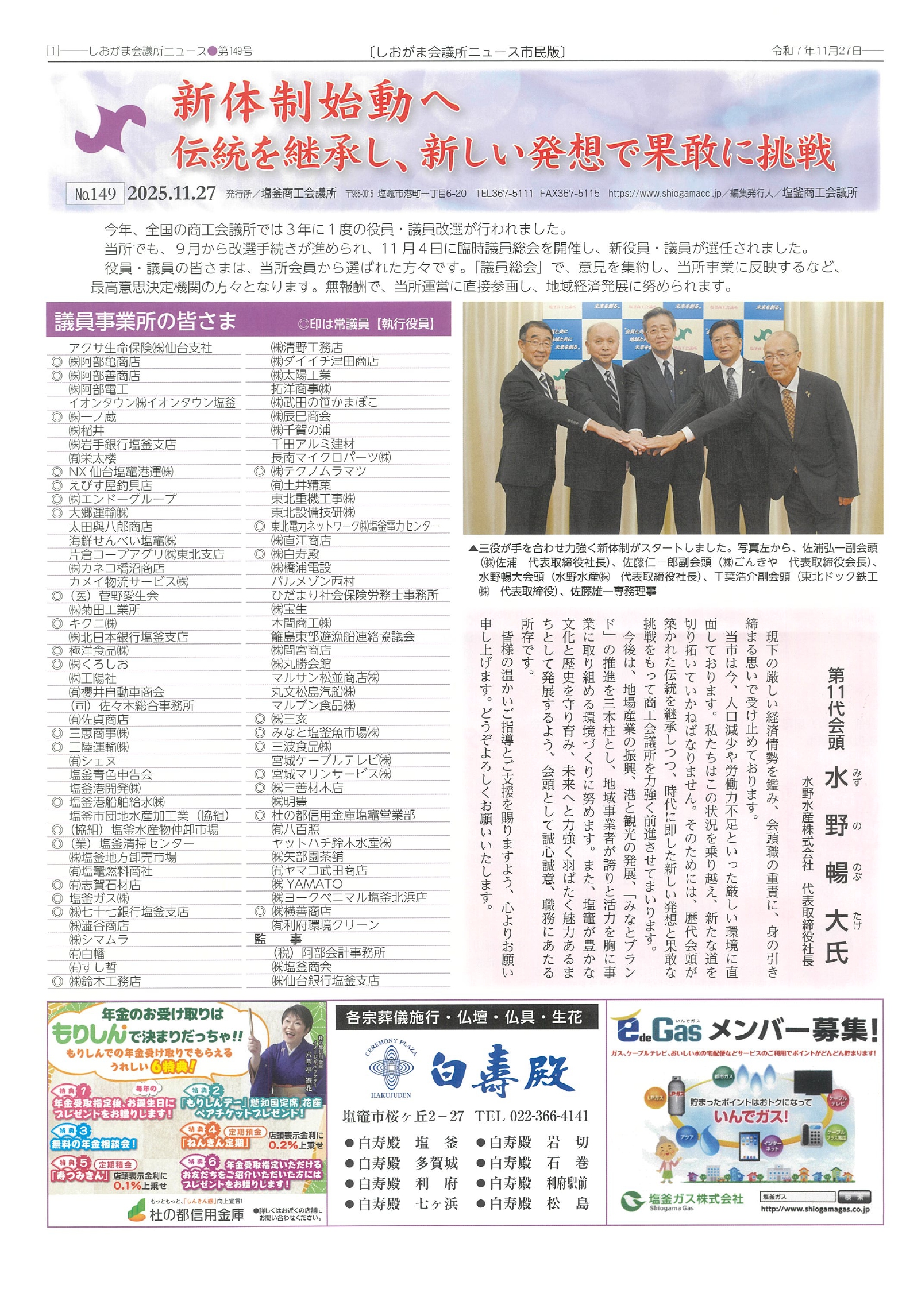 - [会議所ニュース]2025.11.27発行「しおがま会議所ニュース市民版」の掲載について